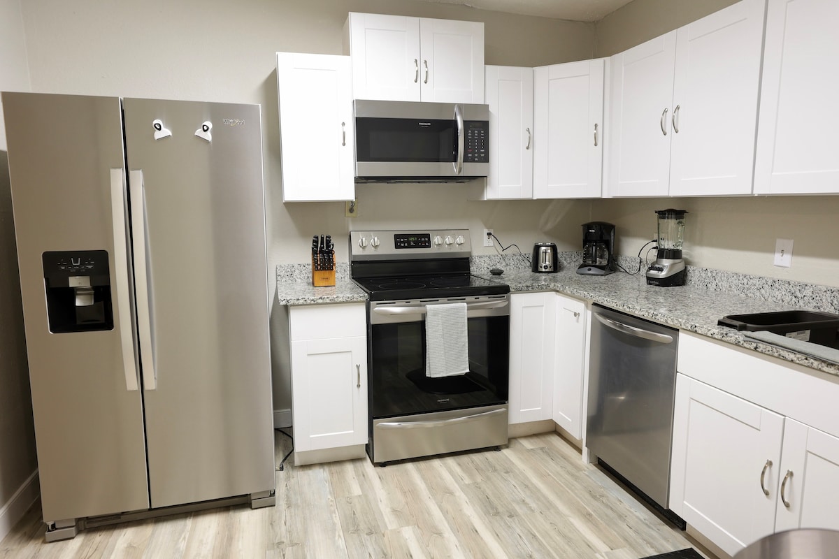 居心地の良いテキサスをテーマにした1ベッド、1バスルームのアパートへようこそ!ヴィンテージのテキサスの装飾と活気に満ちたテキサスのプライドを特徴としたこの空間は、快適さと魅力を提供します。80インチテレビ、設備の整ったキッチン、豪華なキングサイズベッドを備えたリラックスできるリビングエリアをお楽しみください。モダンなバスルームにはすべての必需品が揃っており、アパートは地元のアトラクションやダウンタウンからわずか数分です。週末の小旅行や長期滞在に最適で、テキサス州オースティンを探索するのに理想的な拠点です!