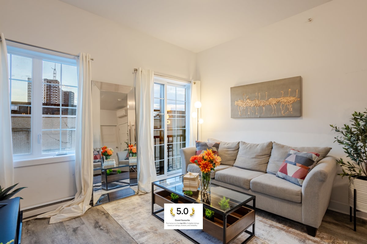 モントリオールの中心部にある明るく居心地の良い1ベッドルームのアパートへようこそ。最大4名様までご宿泊いただけます。クイーンベッド、ソファベッド、バスルームが1つあります。設備の整ったキッチン、快適なリビングスペース、高速Wi-Fiをご利用いただけます。人気レストラン、ショップ、市内の観光スポットから徒歩圏内にあり、快適にスタイリッシュにモントリオールを探索するのに理想的な拠点です。
