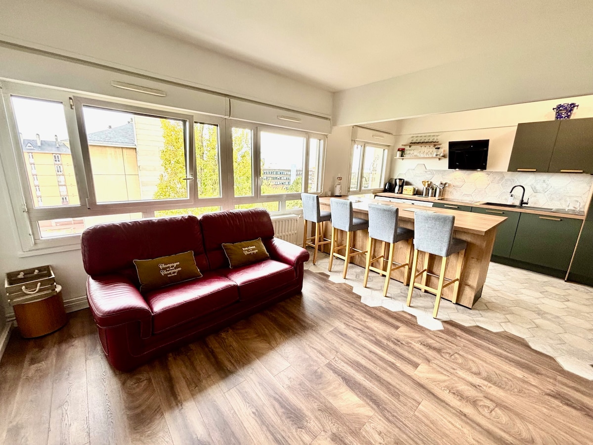 Venez vivre une expérience en plein cœur de la ville rémoise en profitant d'un haussmannien chaleureux et accueillant! Un véritable cocon citadin! Ce très bel appartement de 76 m², entièrement rénové avec parquet massif, grande hauteur sous-plafond, est situé en hyper-centre de Reims, à 5 min à pied de la Cathédrale et à 15 min à pied de la gare. Un petit-déjeuner et une demi-bouteille de Champagne vous sont offerts!