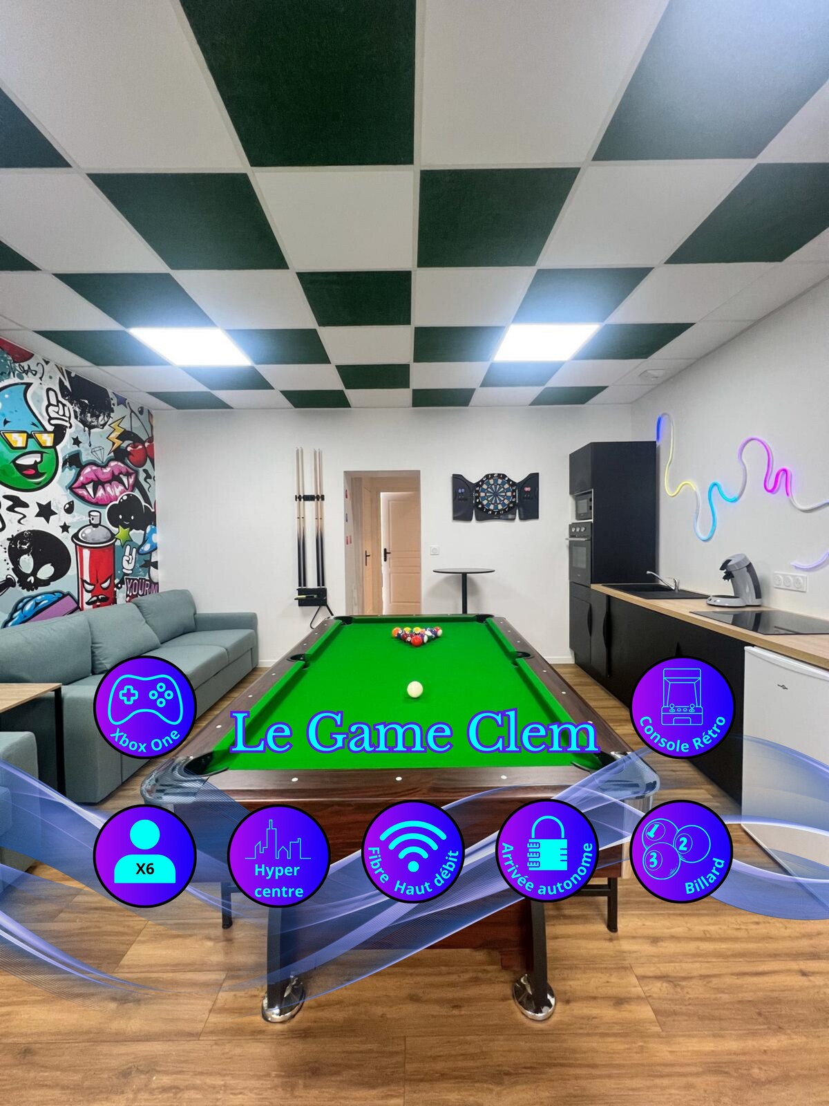 Idéal pour 1 à 4 personnes grâce à son lit confortable et son canapé-lit, cet appartement rare et chargé d’histoire se situe en plein cœur de Saint-Étienne, dans un bâtiment classé monument historique. Installé dans les anciennes écuries de M. Giron, notable stéphanois du XIXᵉ siècle, il a été soigneusement rénové. Son décor, inspiré du monde équestre, rappelle ses origines, tandis que la cour intérieure calme offre un véritable havre de sérénité en centre-ville.