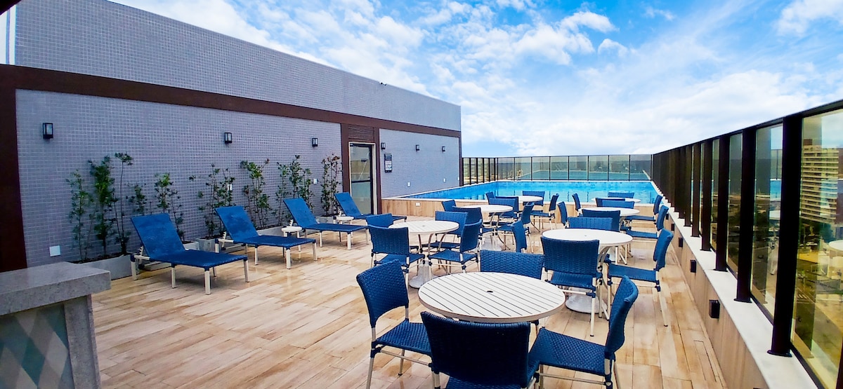 Enjoy a beach front studio, cozy, and beautifully decorated studio located right in front of Armação Beach. The space features a double bed, a fully equipped kitchen, fast Wi-Fi, and everything you need to feel at home. The building is the best in Salvador for short staysânew, safe, and full of charm. With the largest oceanfront rooftop in Bahia and all the amenities you deserve. Ideal for couples, friends, or business trips. Come experience Salvador with comfort, practicality, and style!