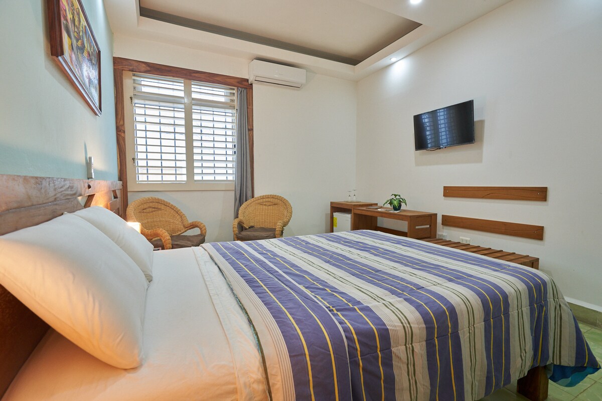 Elegant boutique-style room with private ensuite bathroom, air conditioning, safe box, minibar, daily service and access to the large art terrace. Es una casa en pleno centro de la ciudad a una cuadra de la universidad con muy buen confor y gusto y gran atención a los clientes está llena de Arte contemporánea y presta también servicios y organización , se le puede recoger en aeropuerto