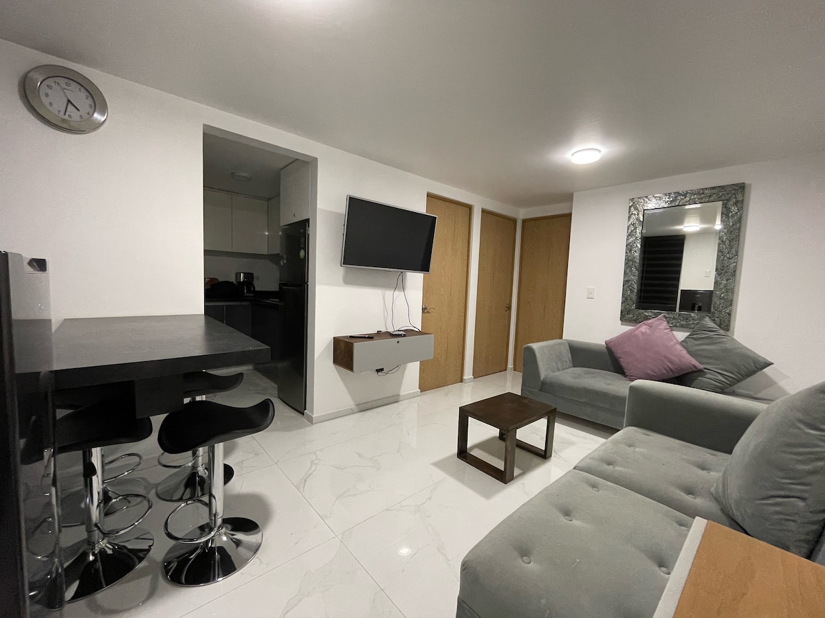 この素晴らしく快適で中心部に位置するアパートでお待ちしております。ご滞在に必要なすべてが揃っており、交通機関、地下鉄、メトロバス、トロールに近いです。訪れるべき場所は、美術宮殿(Palacio Bellas Artes)、ソカロ(Zocalo)です。ガリバルディ広場、革命記念碑、オートドロモ・エンティエス・ロドリゲス ロドリゲス、フォロ・ソル、美術館、バー。レストラン、カフェ、有名な「シウダデラ」(記念)、チャイナタウンの近くにあり、フルキッチン、冷蔵庫、電子レンジ、洗濯機、テレビ、Wi-Fi(有料)を完備しています。