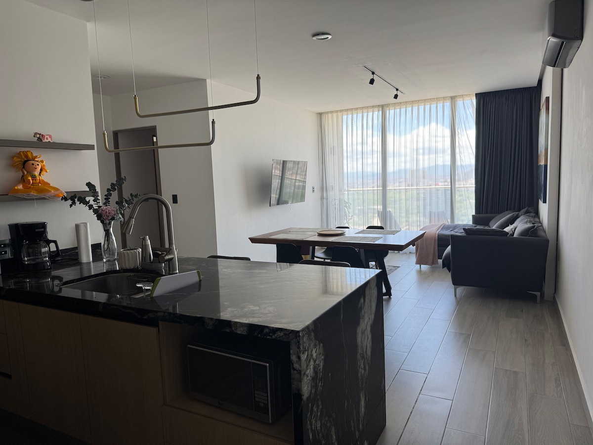 ケレタロの主要道路の一つ、ベルナルド・キンタナ大通りのすぐ近く、市内へのアクセスも抜群の、モダンで絶好のロケーションにあるアパートメントで、スタイリッシュな滞在をお楽しみください。 歴史地区、ケレタロ2000公園、コレヒドーラ・スタジアムまでわずか数分です。 建物内にはスイミングプール、ジム、24時間体制のセキュリティ、2台分の駐車スペースをご用意しております。 高速Wi-Fiは、リラックスしたり、街を散策したりするのに最適です。