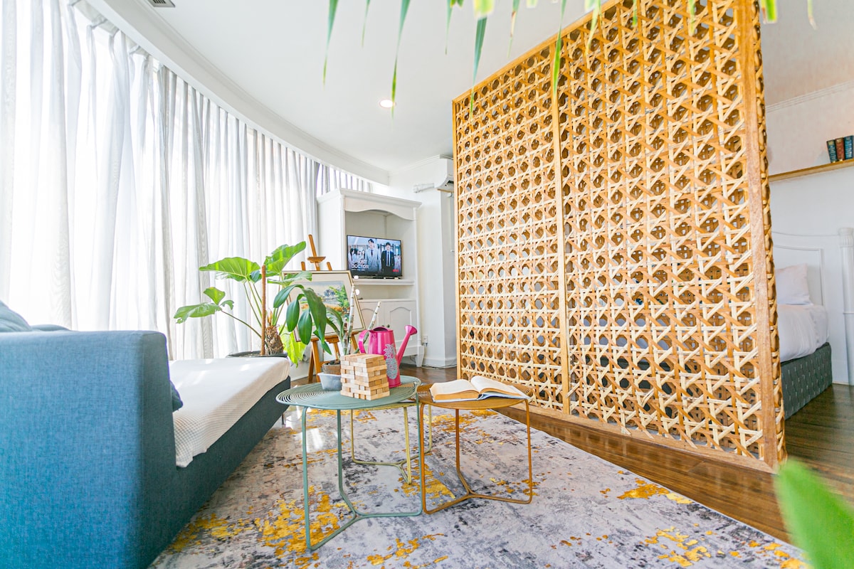 マカティのポブラシオン中心部にある広々とした個人所有の物件: お客様のご滞在のために、誠実に高品質のアレンジをさせていただきます。 32平方メートル以上のワンルームで、消毒済み、掃除機とモップで清掃済み、静か、インバーターエアコン、バスタブ、十分な寝具とタオル、飲料水が用意されており、まるで自宅のようです。 徒歩数分:マカティCBD、ロックウェル/センチュリーモール、素敵なレストラン、有名なポブラシオンの多様なナイトライフ! [最初に「お問い合わせ」いただくか、ロビー入りのために政府発行の身分証明書とワクチン接種証明書の写真を提供して予約してください。]