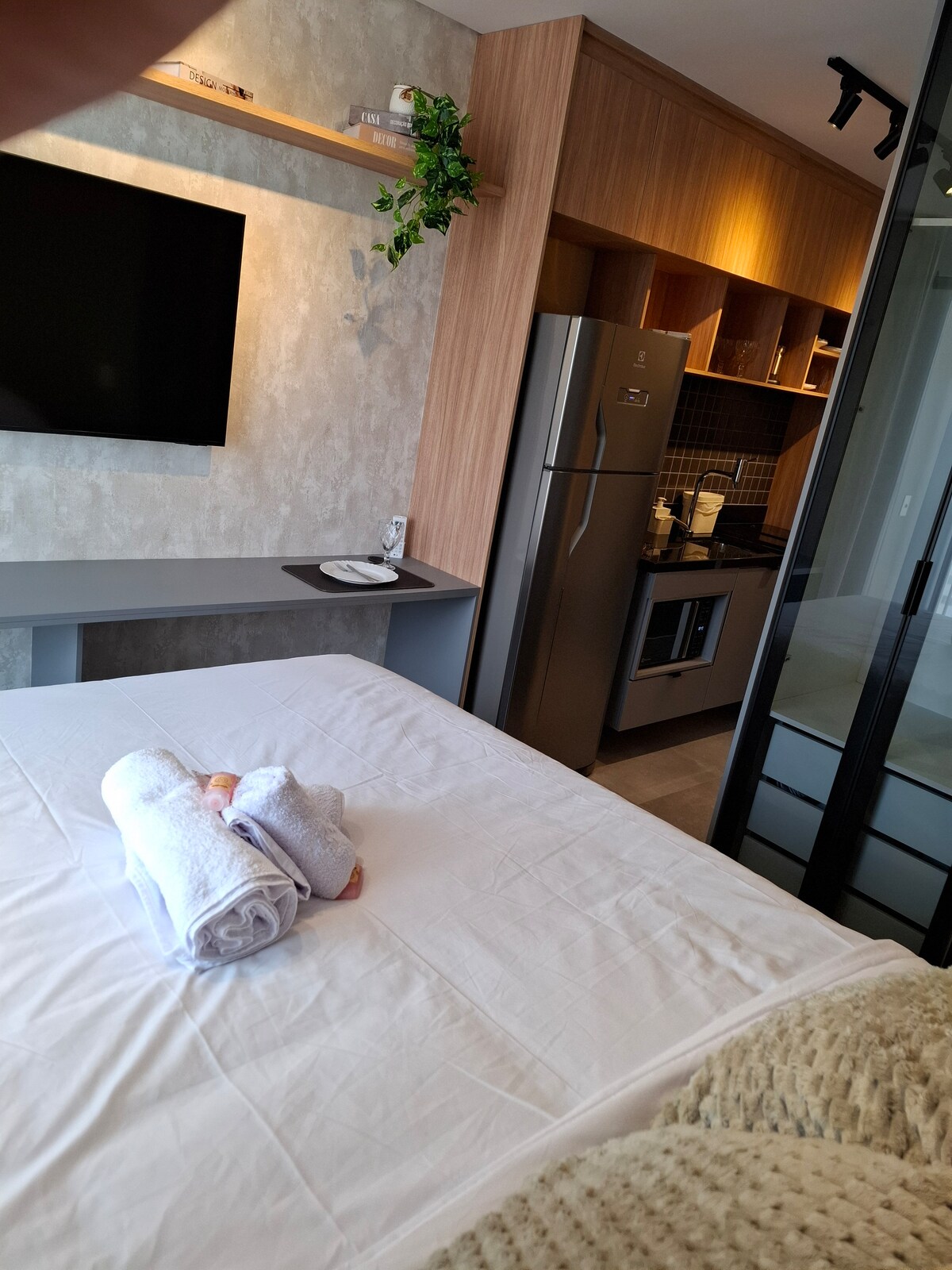 Estúdio espaçoso com muito design, arquitetura e a melhor vista de São Paulo. Loft completo! Com cama queen, closet, ar condicionado silencioso, cozinha completa, home office, WI-FI, TV 55” e uma belíssima banheira de imersão, de onde pode apreciar o seu drink preferido e curtir uma vista apaixonante. São Paulo toda estará há poucos minutos de você. Acesse o metrô andando apenas 200m. Reserve com tranquilidade! Proporcionaremos uma excelente hospedagem e uma ótima experiência!