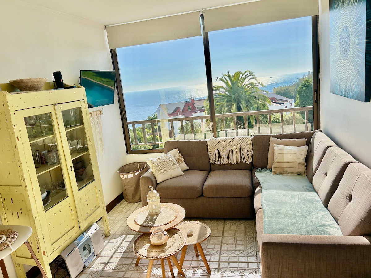 最高のロケーションのアパート。ビーニャ・デル・マールのバスターミナルから2ブロック。ビニャ広場から4ブロック、地下鉄から1ブロック。 2つのバルコニーがある日当たりの良いアパート。快適で、とても手入れが行き届いています。24時間セキュリティ。地下駐車場。ダブルルーム、バスルーム2室、リビング、シングルサイズのベッドがあります。フルキッチン。 ベッドリネン、タオルなどが含まれています。 清潔さを厳守しています。 ゲストへのサービスとして食べ物を用意しています。 夏にはプールが利用できます。チェックインとチェックアウトは自由にご相談ください。