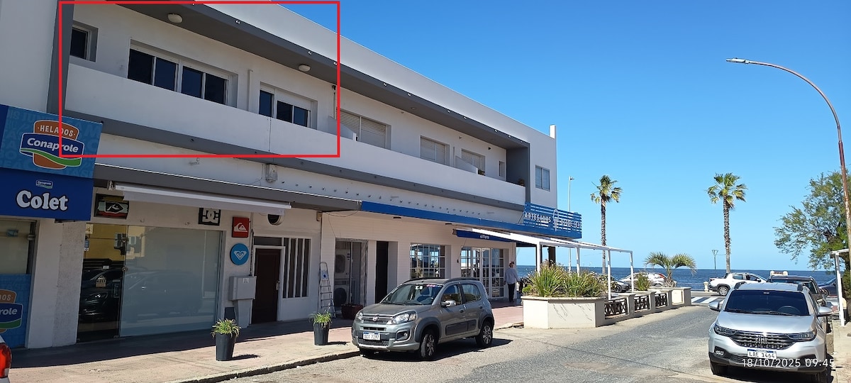 Apto reciclado frente a rambla en PLENO CENTRO! Posee un dormitorio con cama doble y sofá en el living. Posibilidad de agregar cuna. Aire acondicionado en living. Es necesario subir escaleras para acceder. Todos los servicios a 1 sola cuadra: supermercado, cambio, farmacia, dentista,red de cobranzas, tiendas,estación de servicio, pub, cyber, restaurante,cafetería y heladeria, banco y por supuesto nuestra hermosa rambla! Cuenta con vajilla, Chromecast y TV satelital. Leer evaluaciones :)