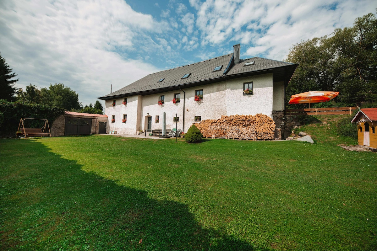 私たちの家は、ブランスキー・レス国立公園の中、ズラタ・コルナ村の近くにあります。 チェスキー・クルムロフまで車で15分。電車駅-村トリソフまたはプレショヴィツェ。 トリソフ村とプレショヴィツェ村の間の観光ルートを車で お子様連れのご家族に最適です。 十分な水があれば、ジャグジーをご用意できます。 焚き火とバーベキューを楽しめます。 家の目の前に駐車場があります。 7月/8月は、ご要望に応じて到着時の週ごとの滞在をお勧めします。
