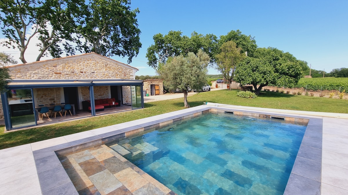 私たちは、ブドウ畑の中に位置する理想的な場所にある小さなコテージを貸し出しています。この小さな楽園では、観光地を楽しみながらリラックスできます(サラグ湖5 km、海40分、サーカスムレーズナバセル、サン・ギレム・デュ・デザールラルザック高原など)。サン・ジャック・ド・コンポステーラに向かう途中、小さなオルトゥス礼拝堂が庭にあります! 3 km先には、すべてのアメニティ・設備(毎週水曜日に開かれる美しい南部の市場を含む)を備えた小さな町があります。30分以内に、モンペリエ、ベジエ、セートの各都市に行くことができます。 この小さな家には、オープンキッチン付きのリビングルーム、寝室、ダブルベッドとバスタブ付きのバスルームがあります。家具はシンプルですが実用的で上品です。 テラスでは、竹のフェンスの日陰で使いやすい軽食を作ることができ、2000平方メートルの緑の土地を楽しむことができます。