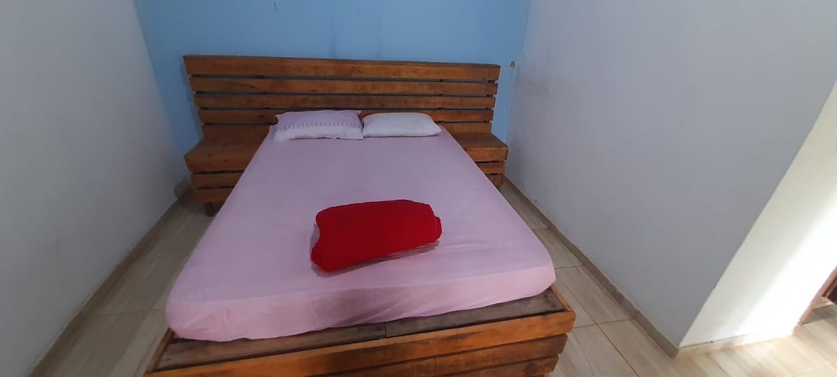 Suíte Gratidão: Para casal ou para até 5 pessoas. 1 cama de casal; 1 treliche; café da manhã; televisão 32 polegadas; frigobar; ar condicionado; roupas de cama e toalhas; banheiro privativo; água.