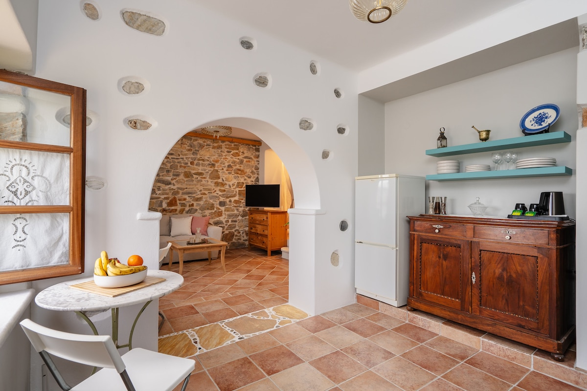 Kambones 1615は、何世紀にもわたって私たちの家族が所有してきた、愛情を込めて修復された歴史的な家です。 私たちのヴェネツィア人の祖先ミシェル・サヌードは1615年に私たちの家族と結婚し、古代のオリーブ畑のある谷を見下ろすバルコニーのドアを備えた現在の形を家に与えました。 古い家具は修復され、美しい特徴はすべて保存されています。 厚い石の壁が夏は涼しく、冬は暖かくしてくれます。 私たちはギリシャのエコツーリズム認定を受けています。