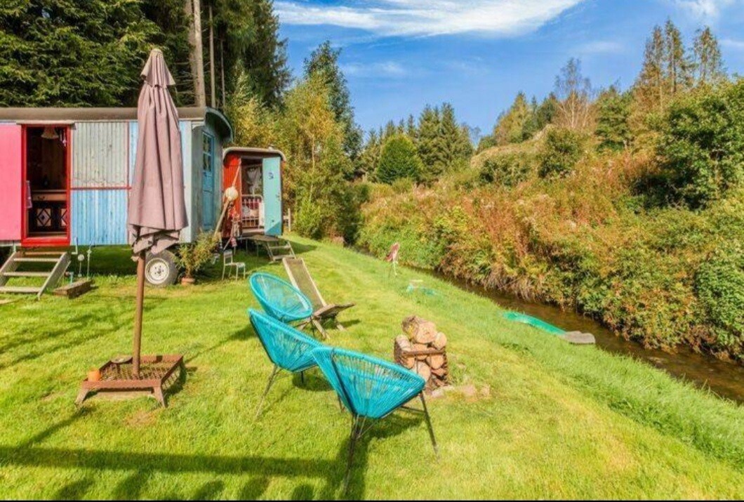 小川のほとりの静かな場所に置かれた本格的でカラフルなキャンバーでの一味違った滞在。このスペースは5人家族を収容することができます。 3つのキャラバンには、到着時にすぐに使用できるダブルベッドが用意されています。4つ目のカーテンには、簡易キッチン、ダイニングエリア、バスルームがあります。外部にはテーブル、椅子、デッキチェア、焚き火台などがあります。テレビやWi-Fiのない「デジタルデトックス」スポットです。近くに遊び場がある共用スペースもあります。追加料金:ジャグジー/サウナ。