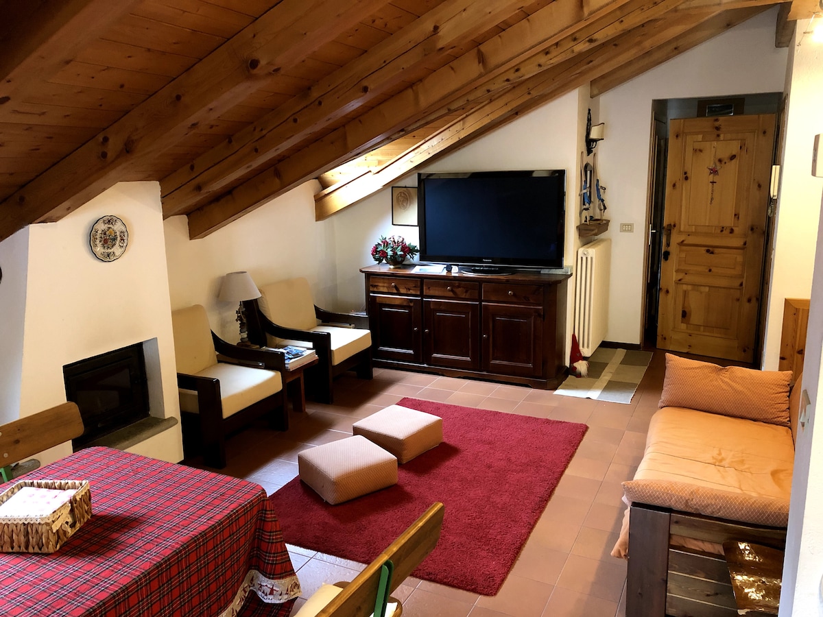アルプス山脈。イタリア。アオスタ渓谷。標高1600メートルの小さな村にあるキャビンで、牧草地、放牧されている牛、山の穏やかな雰囲気を楽しめます。冬は(通常)雪が降ります。古い屋根梁を保存しながら愛情を込めて修復された、心の居場所です。大きな窓からの素晴らしい景色と、平和、暖かさ、リラクゼーションを求める人々のための特別な静けさ。家具はとても素敵で、何よりも木材を使用していますが、より鮮やかな色とモダンな快適さも備えています。 スノーシューやスキーで静かな小旅行。