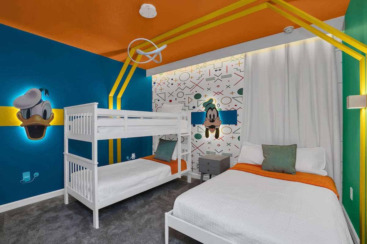 ウィンザーアイランドリゾート - 5室のスイート - 14名のゲスト - 5.5バスルーム - プール暖房 - サマーキッチン - テーマルーム この素晴らしい家を一番乗りでレンタルしましょう! この家は、インテリアデザイナー(B & Design)が選んだ真新しい高品質のインテリアで、全面改装され、塗装され、家具が備えられています。「アナと雪の女王」と「ミッキー・サファリ」をテーマにした素晴らしい寝室2室と、ミッキーをテーマにした素晴らしいロフトテレビラウンジがあり、思い出に残る滞在をお楽しみいただけます。