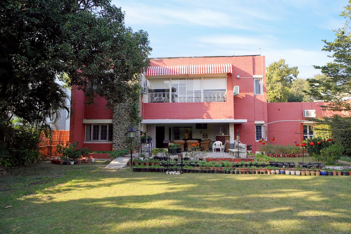 チャンディーガルの豪華なエリア。湖やその他の観光スポットの近く。家ではシェフ/メイドが対応しています。すぐ後ろには自転車道があり、自転車のレンタルも可能です。ゴルフ場まで1km弱で、無料駐車場があります。