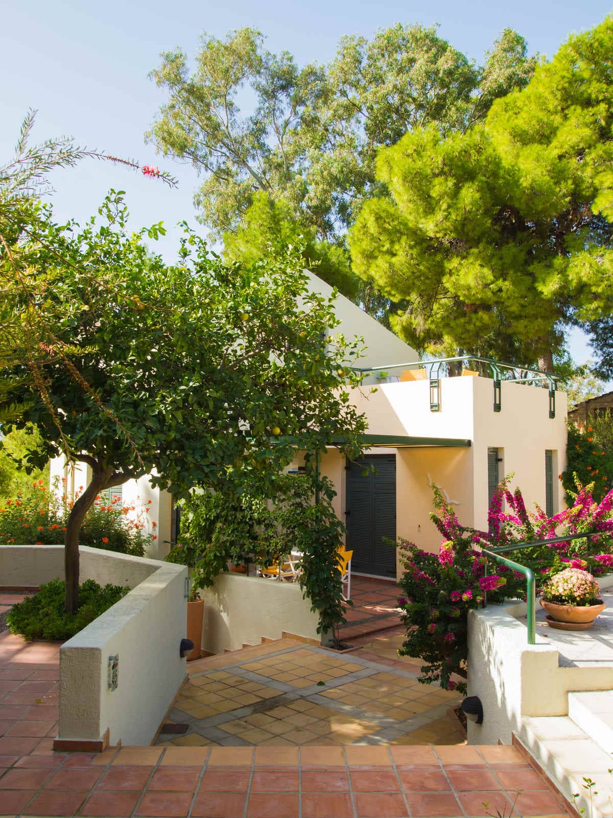 Feature a spacious bedroom with 1 double or 2 twin beds with bright colors and modern design. Also a cozy lounge where you can relax watching the satellite TV, a fully equipped kitchen where you can prepare the daily meals, a comfortable bathroom and a veranda with individual sun-chairs to enjoy the sun and the beautiful natural surrounding.