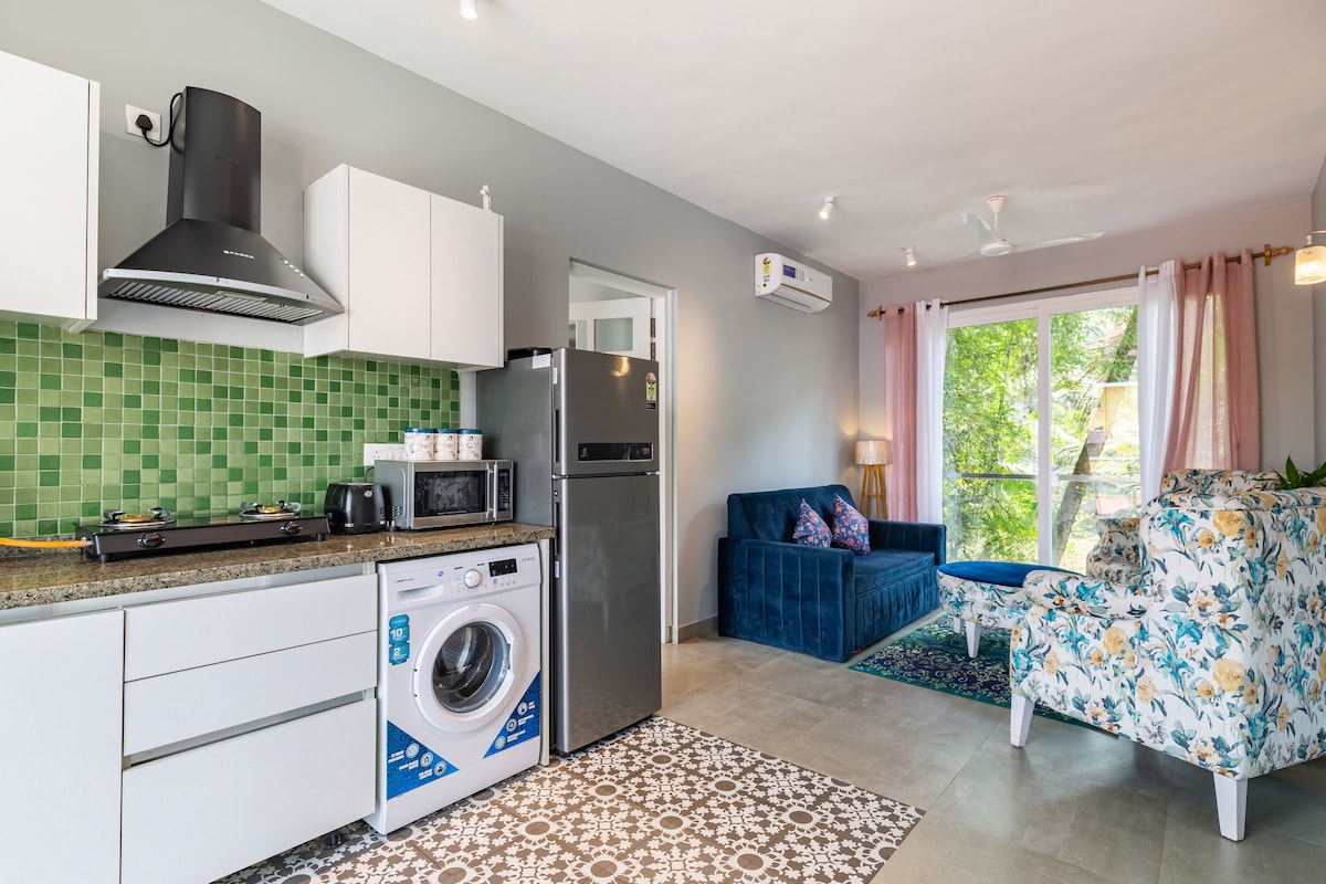 私の居心地の良いホリデーホームへようこそ。無数のココナッツの木々に囲まれ、ここにはゴアの雰囲気があります。 この1ベッドルームは3名様までに最適で、必要なものがすべて揃っています。 Wi-Fi、設備の整ったキッチン、広々としたバルコニーとリビングルーム、スマートテレビ、良い景色、そしてもちろん良い雰囲気! プールでリラックスして泳いだり、ジムでトレーニングしたり、甘いリル・ウッドビーチで夕日を眺めたり、カヤックを楽しんだりできます。 美しいゲート付きの住宅地の中心部にある静かなロケーションです。