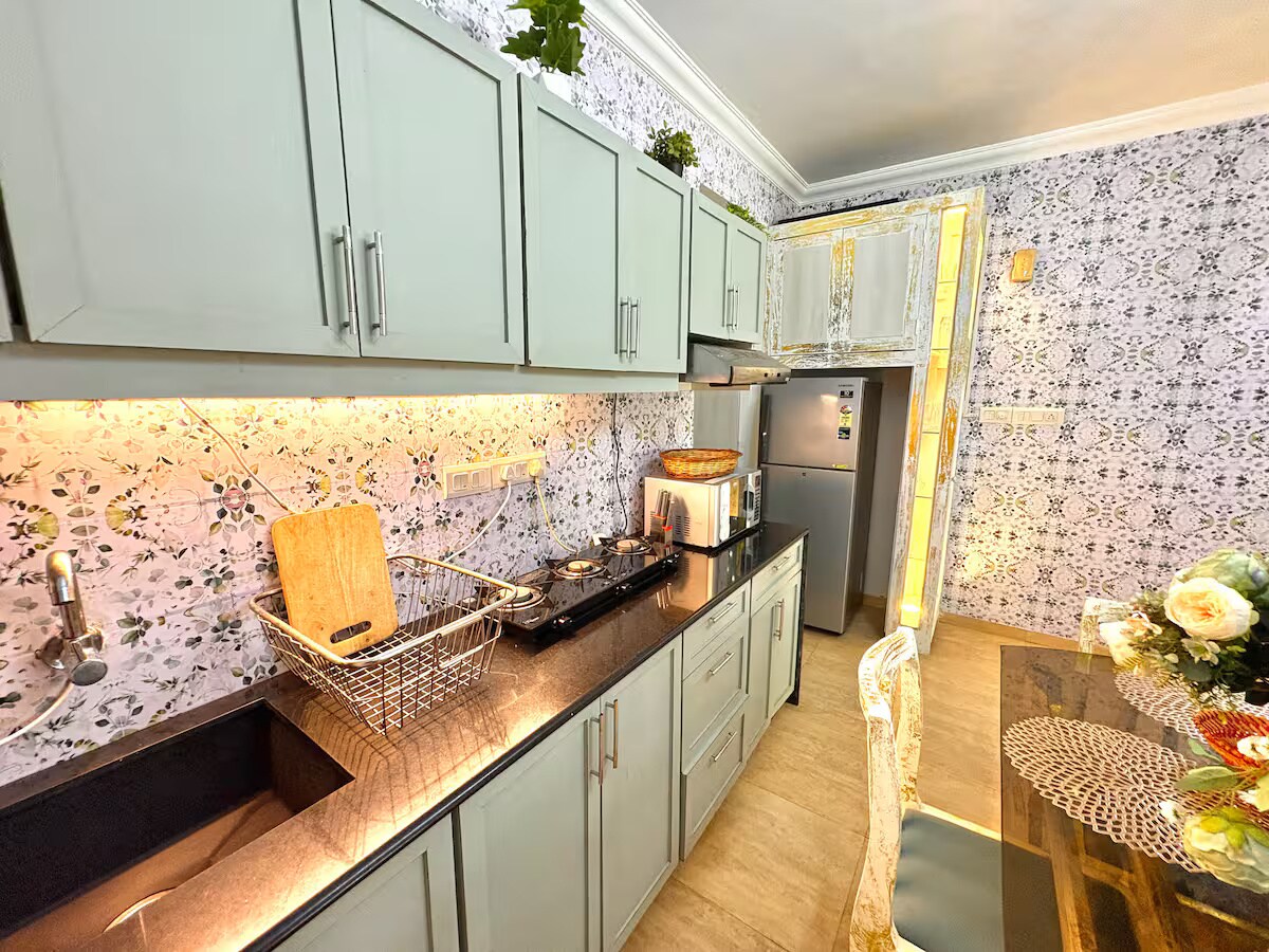 Discover "Happy Home" by Escavana Stays, surrounded by popular hotspots like Thalasa & Hosa, this peaceful apartment is your gateway to Goan Coastline. Nestled in a secure gated complex, Happy Home offers convenience at every turn. You're just minutes away from pharmacies, ATMs, petrol pumps, supermarkets, wine shops and local restaurants. Inside, find two stylish bedrooms for a comfortable night's rest, a cozy living room flowing into a dining area, and a modern kitchen with modular fittings.