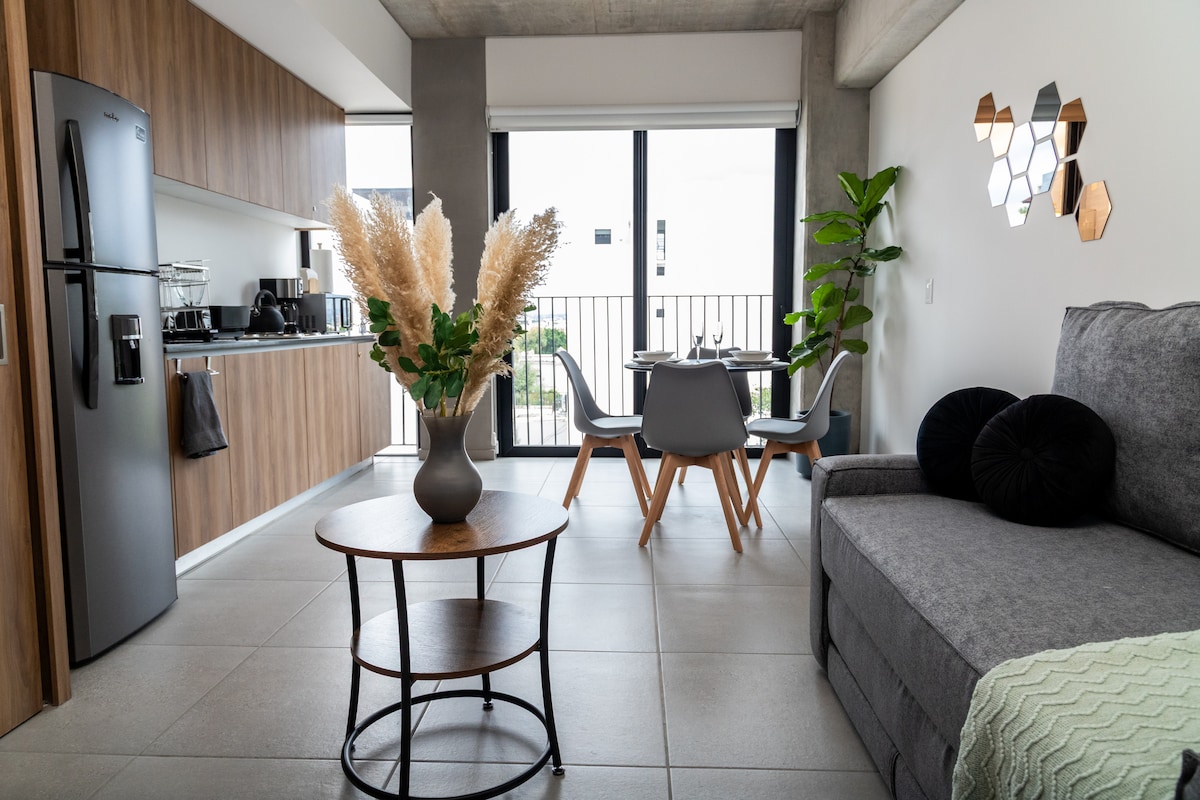 グアダラハラへようこそ! グアダラハラの中心部でタパティア(Tapatía)の体験をしてください!街で最も人気のあるエリアの1つ、コロニア・アメリカーナをお楽しみください。 この場所はお客様のことを考えてデザインされています。朝にはフレンチプレスで美味しいコーヒーを楽しむことができ、キッチンにはお料理をしたいときに必要なものが揃っています。プライベートテラスで冷たいビールや美味しいワインを味わい、高速インターネットを閲覧し、クイーンサイズの広いベッドで休息してください。