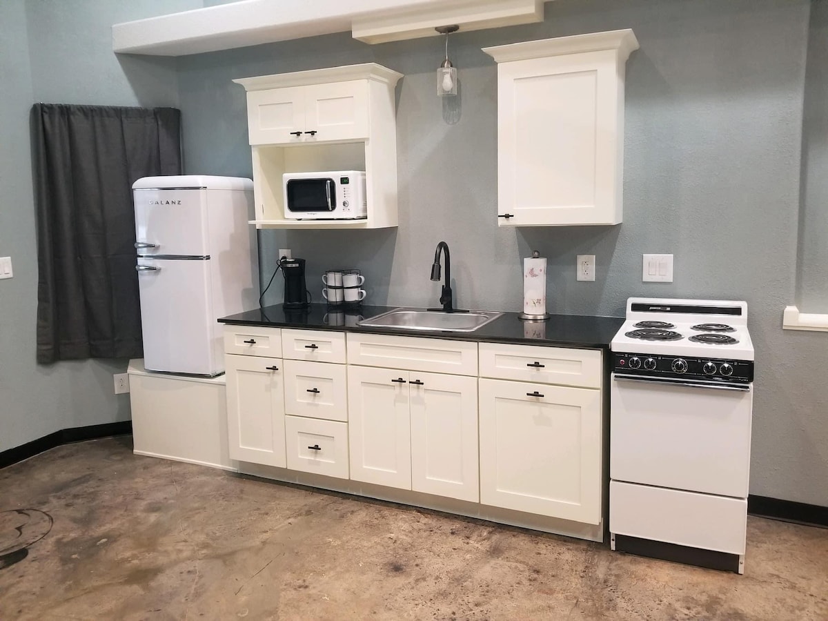 You’ll love the NYC studio feel but in central, rural Missouri. Here at the Broadway Lofts we have 400 sq ft of space to host you. Sleep in the comfort of a King sized Sealy mattress, which feels like home away from home. Also, available is a full sized futon for an extra guest (or two if they're small) ;). Walk-in shower with luxury towels and stocked toiletries. Within walking distance of local restaurants, parks, and shopping!