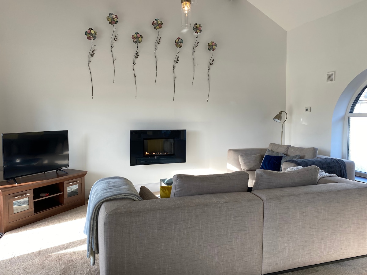 * Check in from 1pm * Early check in available from 11am (pre-booked) for £50 * Late checkout on a Sunday up to 12pm * EV Charging (pre-booked) £20 * perfect for family gatherings, celebrations & wedding stays , open plan * set within private estate grounds ideal for group getaways near the Peak District * Dog friendly * King bedroom with en-suite shower * Double Bedroom * 2 single bedrooms * Family bathroom and shower room * Balcony * Smart TV * Free Parking