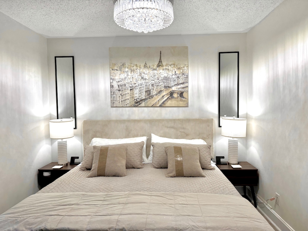 アップタウンまで5分/スマートテレビ3台!スタイリッシュなキングベッド!
