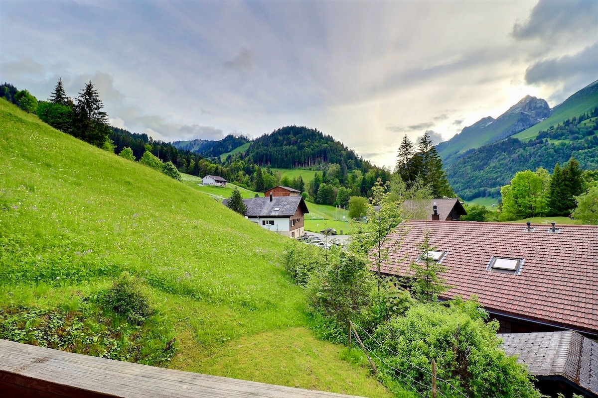 シャルミー村の上にあるシャレーで家族や友人と触れ合おう
