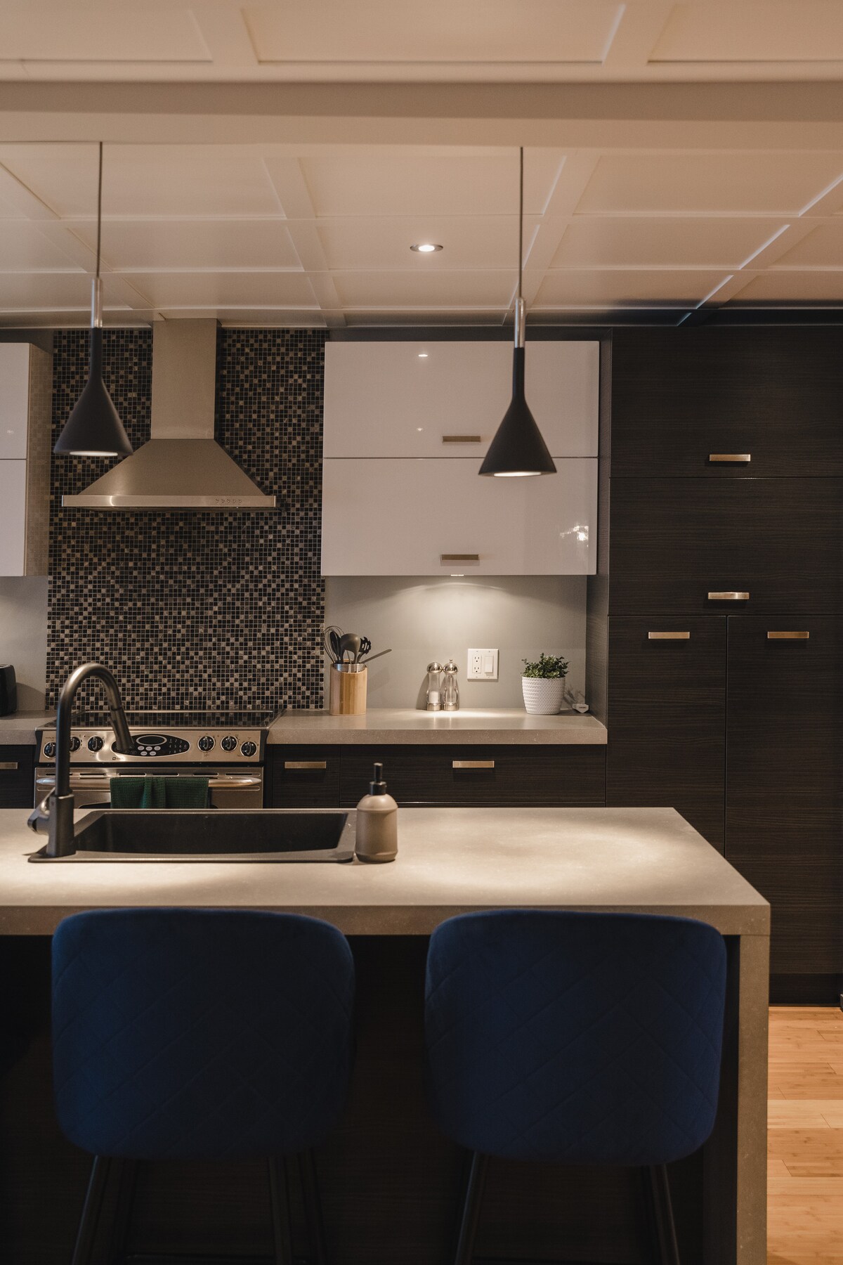 Spacious, luxurious and modern loft in the heart of the beautiful Orleans Island. Just 15 minutes from downtown, and 20 minutes from Mont Ste-Anne and its ski resort. Heated floors, big and fully equipped kitchen, dining room, living room and bedroom with queen size mattress. This is a loft, so this is all in a open area. A curtain separate the bedroom form the living room. The and coffee, as well as soap and shampoo are available.
