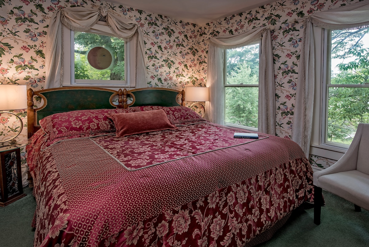 Experience the elegance that Clare can offer; complete with an indoor cafe table overlooking the park. Talented, wealthy, beautiful, and controversial, Clare Boothe Luce (1903-1987) is best remembered as a congresswoman, ambassador, playwright, socialite, and spouse of magazine magnate Henry R. Luce of Time-Life-Fortune. Well known in her career as managing editor of Vanity Fair magazine. ROOM FEATURES: King bed, Kitchenette Neo angle shower