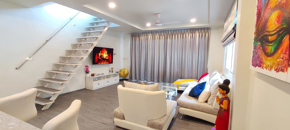 ŚAMAの世界へようこそ。 サムイ島にあるユニークで豪華なロフト。 Śama(クラシックサンスクリット)は、静けさ、平和、落ち着き、休息、平等、静かさを意味します。 バングラックビーチの中心部でアジア風の豪華な体験を提供するこの130平方メートルのロフトアパートメントは、広いリビング、キッチン、専用テラスとプランジプールを備えたダイニングスペースで構成されており、夏の夕日がその白いアーチを通して完璧に捉えられます。