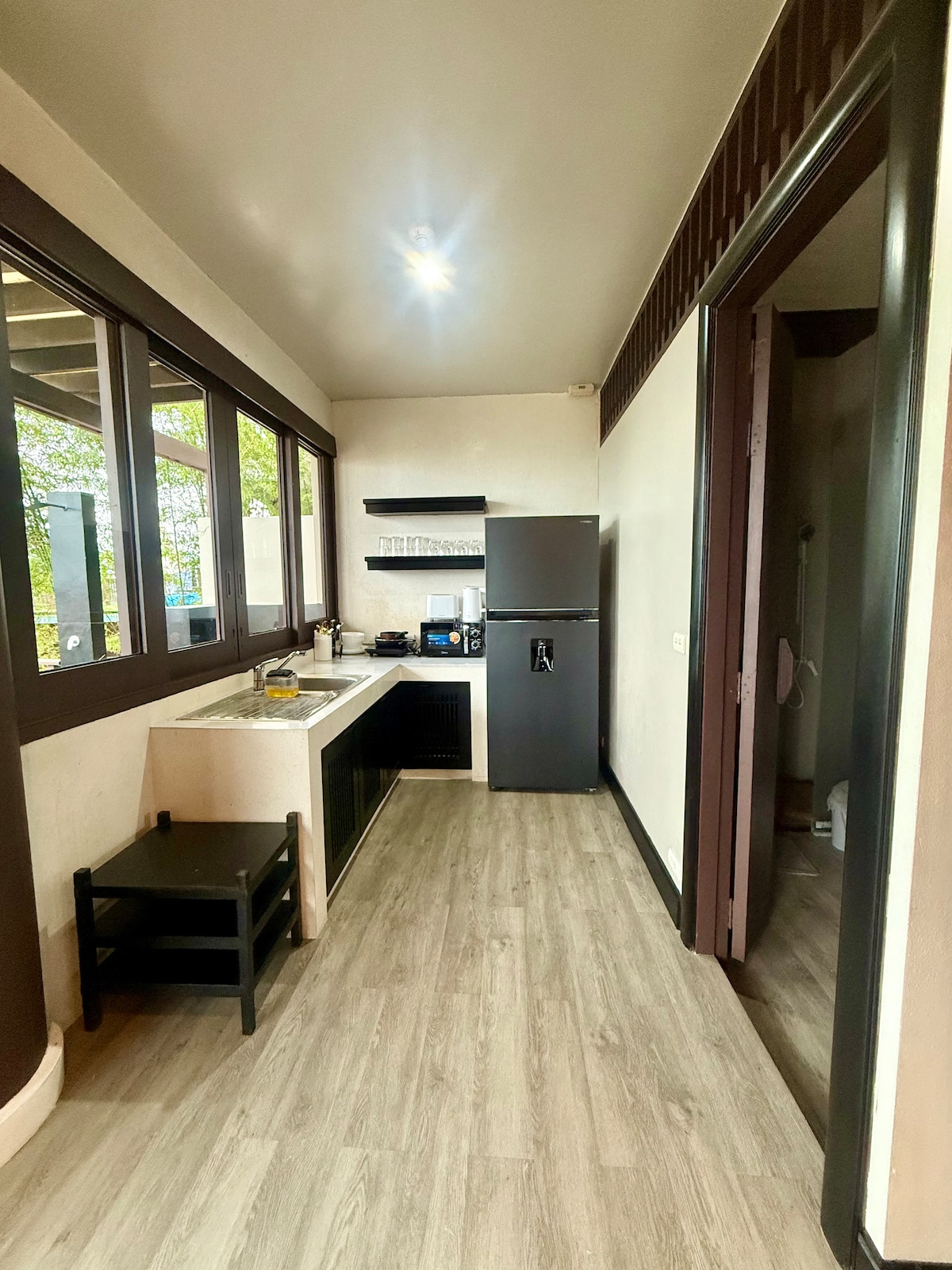 Experience the perfect tropical retreat just minutes from the vibrant Fisherman’s Village. This Bali-style 1 bedroom villa is the perfect escape for couples or solo travelers seeking complete serenity. Step into your private pool oasis, complete with sunbeds for ultimate relaxation under the shade of palm trees surrounding the villa. Enjoy waking up to the view of the pool from the floor to ceiling windows. The kitchen and living room offers the convenience of home and luxury of a 5 star resort.