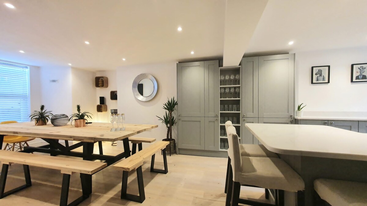 チェルトナムの中心部にある素晴らしい5ベッドルームのタウンハウスで、ダブルベッドルーム5室、シャワールーム2室、リビングルーム、広いキッチン/ダイナー、南向きの庭、駐車許可証が付いています。 徒歩60秒でバー、レストラン、ショップ、ジム、ハイストリートがあるブリューワー・クォーターに行けます。 大人数のグループでリラックスして楽しみ、チェルトナムとコッツウォルズを探索するのに最適な拠点です。 チェルトナム駅からタクシーで10分のところに地元の公園があります。 平日は最低2泊。