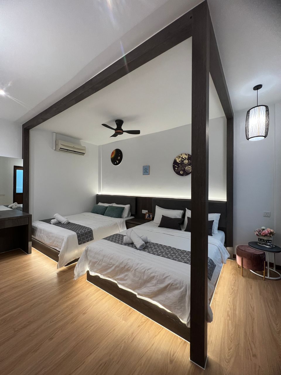 After LEJU 21, we discovered this little gem LEJU 8 in the same alley — once a humble traditional rubber stamp shop, now a cozy heritage hideaway. Restored with love, it features scraped walls where you can still see hints of the original blue paint ( colour once common in the homes of old Malacca), wooden beams and original staircases. We also designed an open-air bath, a quirky yet memorable touch that invites guests to slow down and soak in the moment.