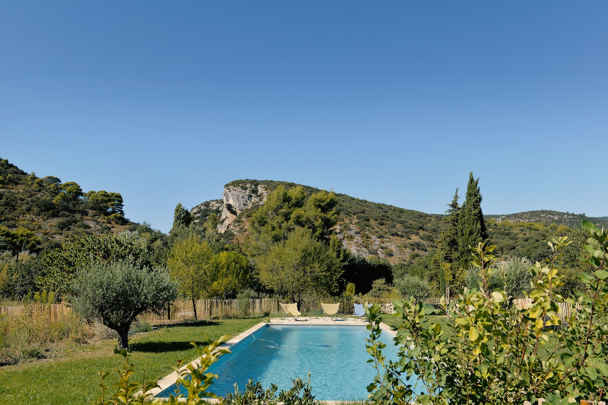 17世紀のプロヴァンス風の農家で、アルピーユとリュベロンの間の理想的なロケーションにあり、エアコン完備。塩水プール、化学薬品不使用、フェンスと警報装置付き。中庭、バレーボール、ペタンク、自転車、卓球、子供用ゲーム。寝室5部屋、浴室4部屋、トイレ3部屋。村やワイナリーの訪問。クライミング、マッサージ、ヨガ、ハイキング。ツアーや訪問についてアドバイスできます。 この農家は騒がしいパーティーを受け入れるためのものではありません。パーティーは禁止されています。近隣に住民がいます。ワイヤレスインターネット接続のできる仕事用スペース。