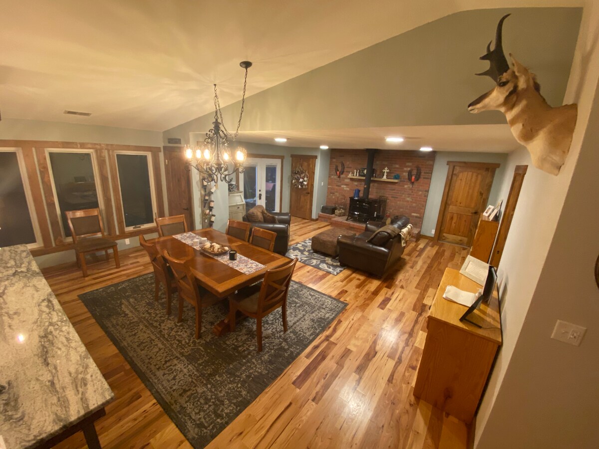 Take it easy at this unique and tranquil getaway. No matter the temperature outside the windows in this space makes it sunny, warm, and peaceful. Perfect for a small family or someone on a solo business trip. Surrounded by trees and on top of a hill gives you a clear view of the city of Cheyenne day or night. Only a mile to shopping centers, restaurants, a grocery store, and only a 10-minute drive to get to downtown Cheyenne.