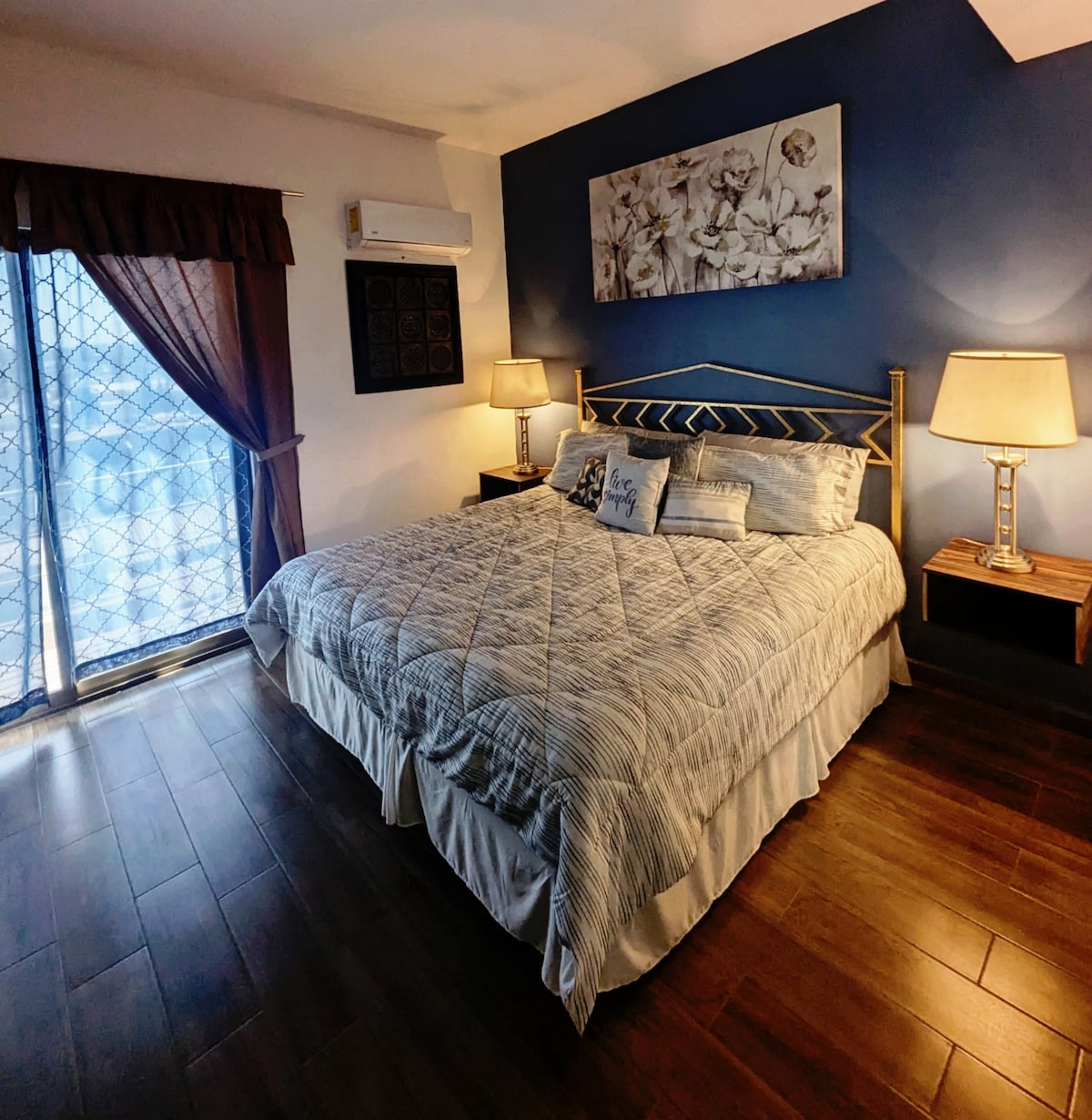 街の北にある完全な宿泊施設をお楽しみください。必要なものがすべて揃っており、お手頃価格で快適な体験ができます。 ダブルベッドとソファベッド、電子レンジ、熱湯ポット、冷蔵庫、ミニスプリット、そしてリラックスタイムのための素晴らしいバスルームを備えています。