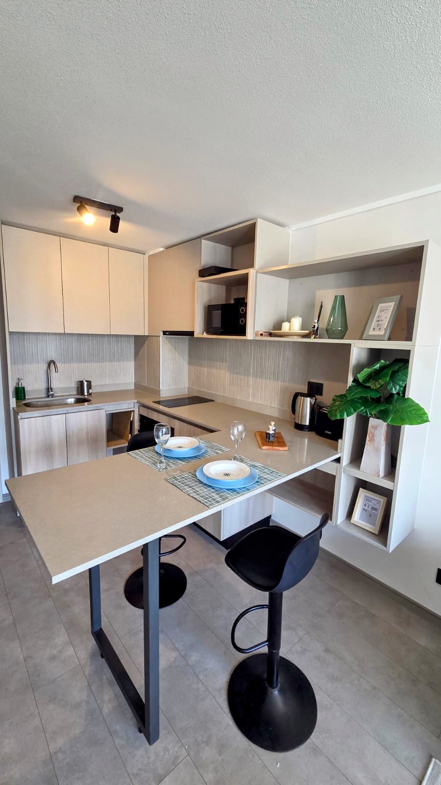 Hola 👋 mi nombre es Paz 🙋♀️ que gusto tenerte por acá 😊 te informo que te vas a hospedar en el centro de Chillan 👏😎 Disfruta de una experiencia con estilo y hospédate en este de departamento en el corazón de Chillan. Principales atractivos de la ciudad y centro comercial a una cuadra, locomoción a la puerta. Descansa en el edificio más elegante de la ciudad. Disfruta de un internet de alta velocidad. Tv HD con variedad de canales. Espacioso balcón. Piso 9 Estacionamiento 🅿️ Reserva !