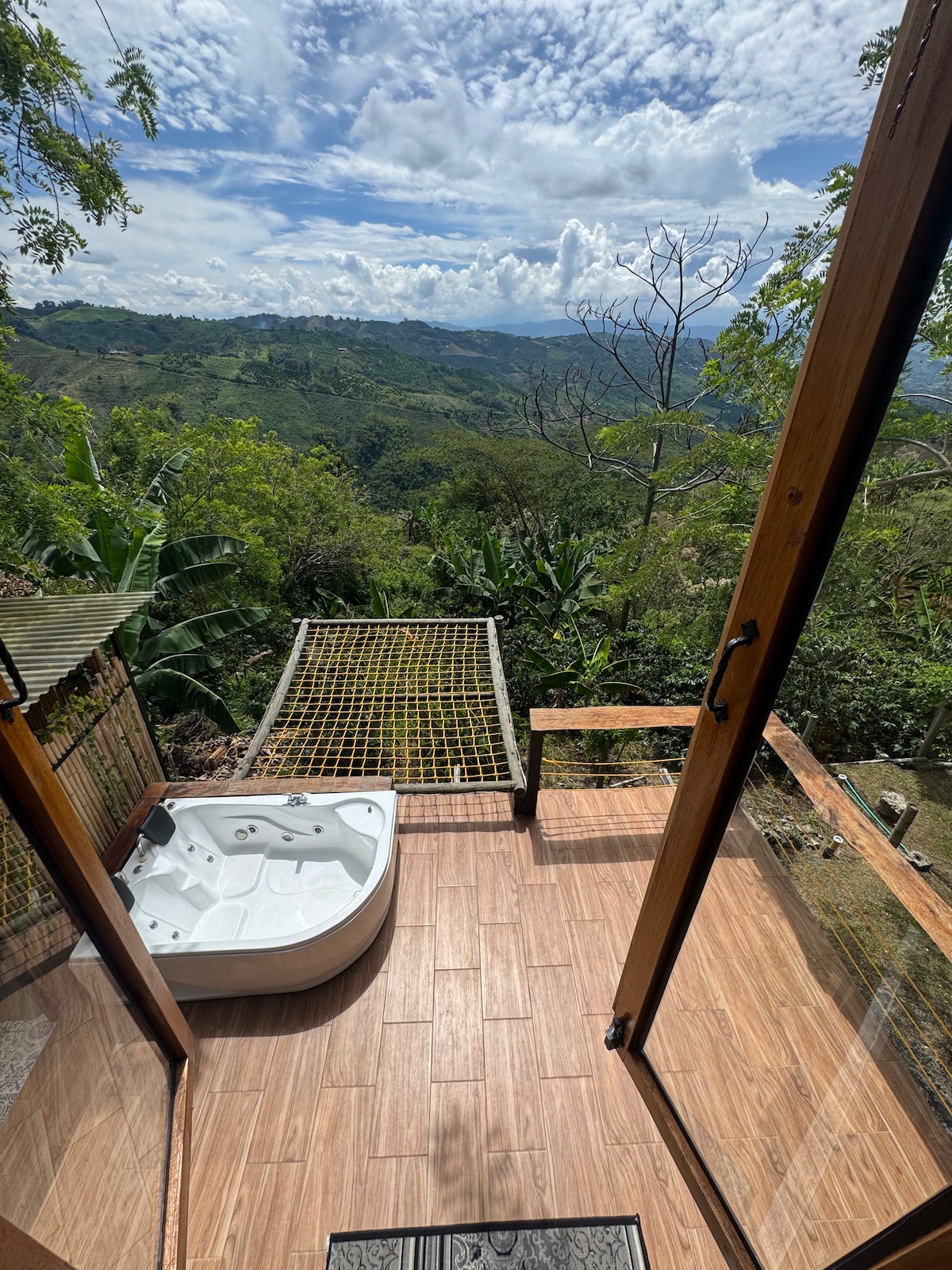 コーヒー栽培の文化的景観の中心にある豪華な隠れ家、ヴィラ・ルナをご覧ください。コーヒー農園と自然に囲まれたこのプライベートな空間には、キングサイズのベッド、コーヒー農園の景色を望む温水シャワー、天然石の温水ジャグジー、キッチン、そして景色を楽しむためのカタマランメッシュが備わっています。日常から離れ、リラックスし、忘れられないひとときを過ごすのに最適です。2名様用のグルメ朝食が含まれています。コロンビアのコーヒー産地でのご滞在を、他では味わえない体験にしましょう!