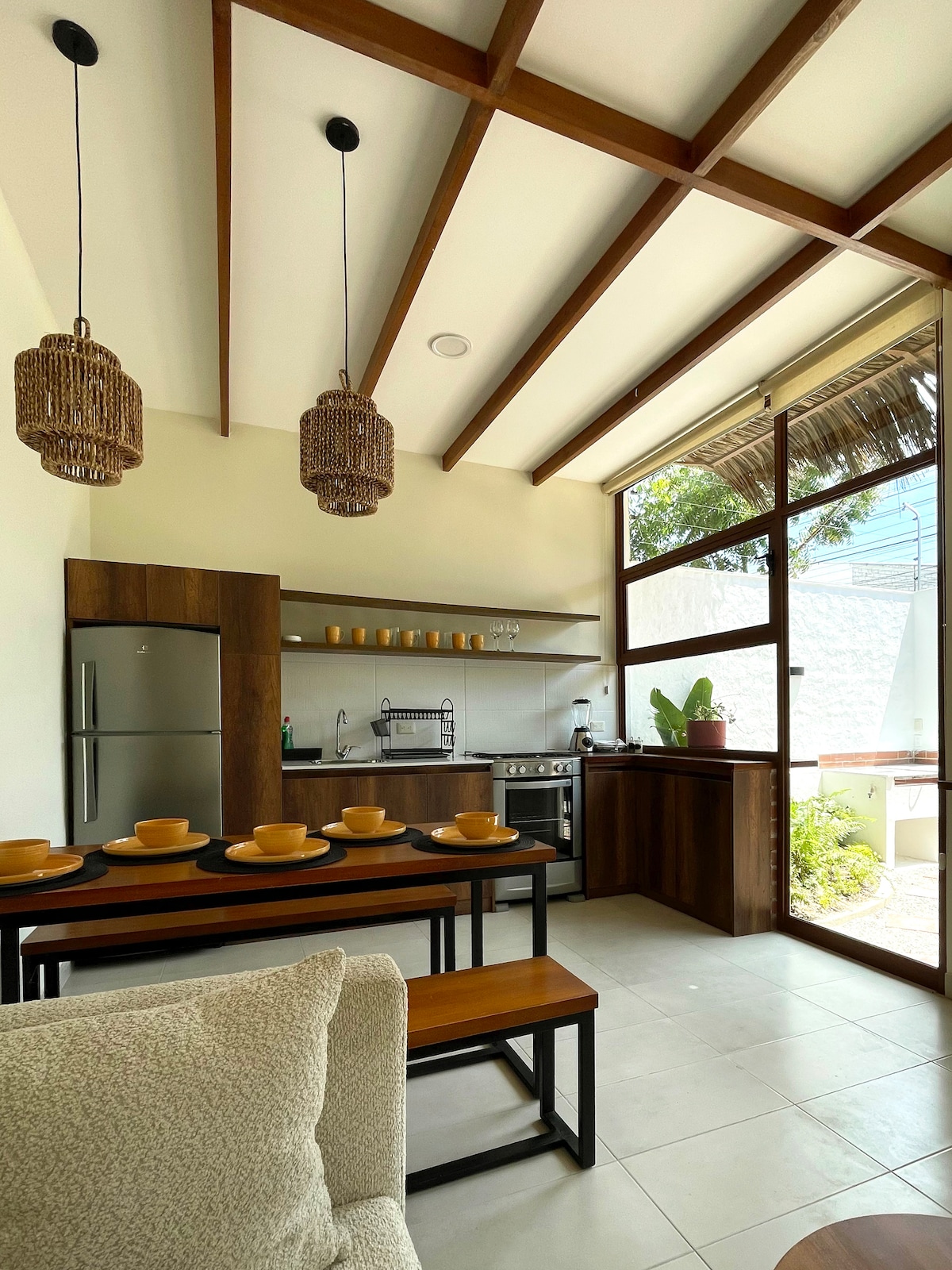 ビーチから車で5分、メガマキシから5分の場所にあるこの中心部の宿泊施設に滞在すると、家族や友人はすべての場所に近くにいます。4つの寝室、3つのバスルーム、グリル、広いガレージ、ハンモックがある居心地の良いポーチがあり、すべての人に快適です。