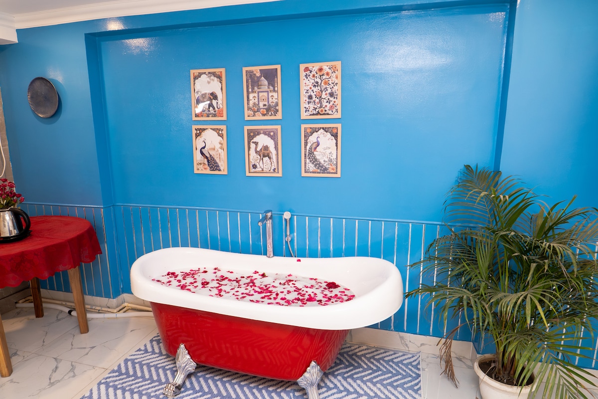 緑豊かな樹冠を通ってそよ風が吹き込み、夜明けには鳥のさえずりが聞こえ、夕日は輝く...デリーの象徴的なロータステンプルとISKCONを見渡す静かな景色を想像してみてください! 南デリーの静かなエリアにある私たちの静かなオアシスは、考え抜かれたデザインの広々としたアパートで、芸術的で落ち着いた雰囲気を提供し、カップル、小家族、または長期滞在に最適です。創造性を解き放ちましょう!私たちの家は、穏やかなエネルギーとモダンな快適さを兼ね備えており、デリーでの時間を思い出に残るものにします。