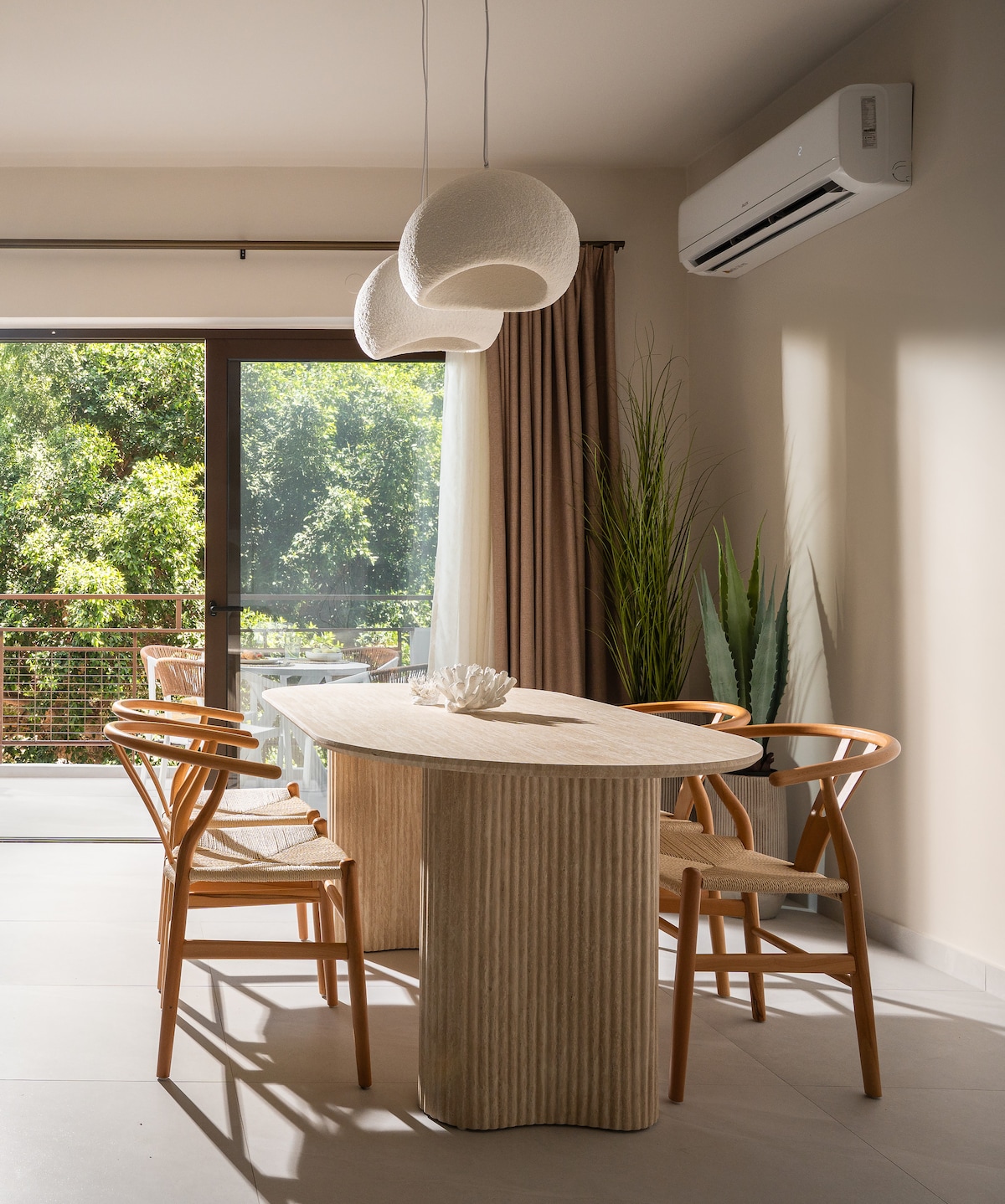 Vlamisヴィラは、4つの隣接するアパートと、ジュニアヴィラという別のアパートで構成されています。 ヴィラは2023年に改装されました。デザインは、明るい色調のクリーンな形状と天然素材に基づいています。 木材や布地などの素材をパステルカラーのスタイルと組み合わせて、ゲストにとって居心地の良い落ち着いた環境を作り出しました。日中のさまざまな照明の質を組み合わせるために、照明の研究に重点が置かれました。