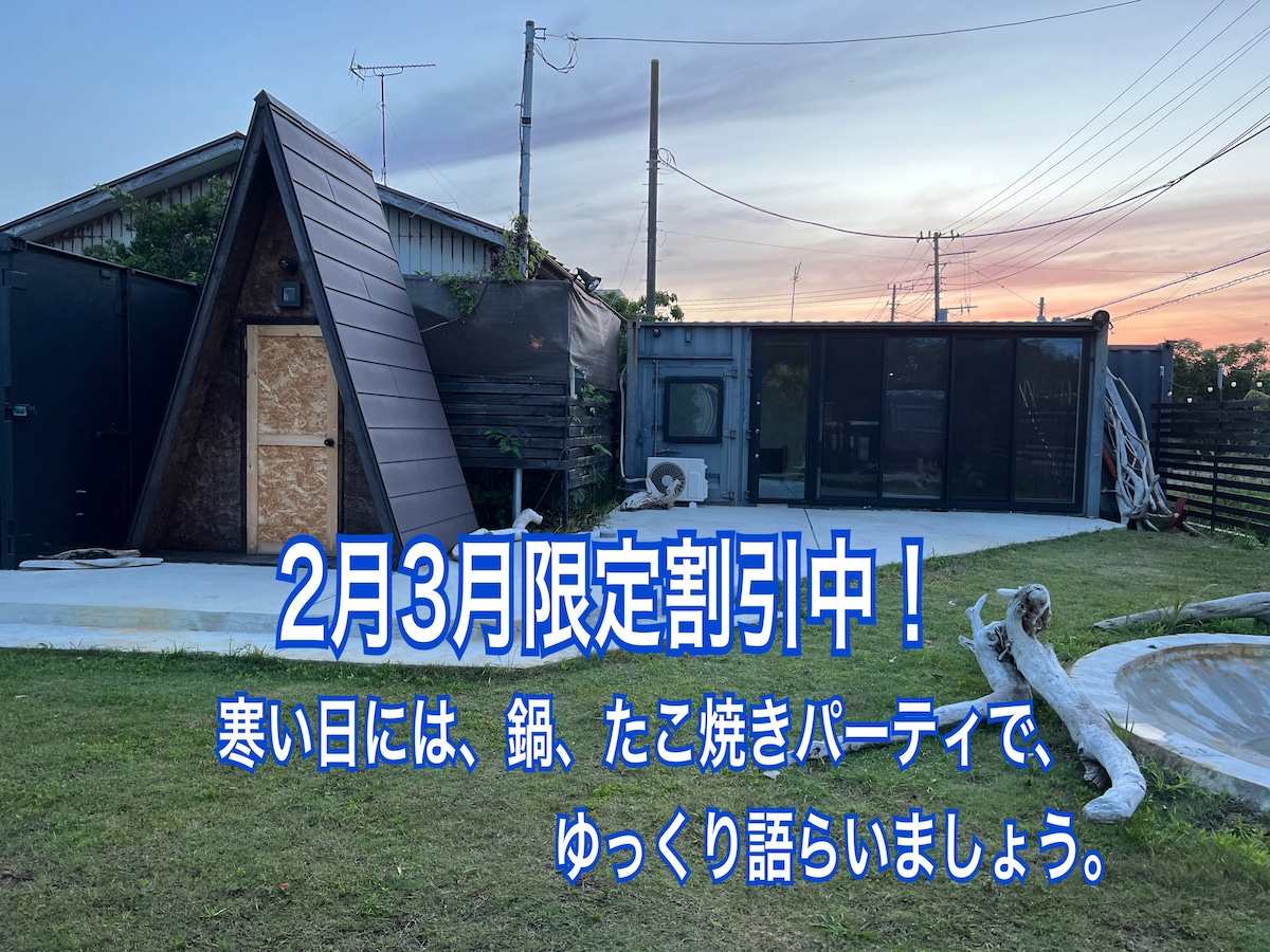 千葉県長生郡長生村にある一棟貸Villa Sea and Starry Villaです。 太陽の里、コンビニ、ビーチ、飲食店までそれぞれ徒歩3分。 東京オリンピック サーフィン会場、まで車で15分。 昼は海で遊び、庭でBBQ、バレルサウナで整い、夜は星空でも眺めながらご家族、ご友人とゆっくり語りあうのもいかがでしょう。 近くのビーチでサーフィン、釣りができます。 近場にゴルフ場も多数あり。 ●BBQセット、バレルサウナのご利用には別途料金がかかります。 フェイスタオル、バスタオル等のアメニティはご持参ください。 【オプション】入金確認後にご準備します。 BBQセット 炭3kg付 、メンテナンス費用として¥5,000 持ち込みの場合 清掃 ゴミの処分等として ¥2,000-かかります ●バレルサウナ(薪 バケツ1杯2時間分ぐらい付) メンテナンス費用として¥5,000 ●焚き火セット 焚き火台、薪1バケツ付き ¥3,000 追加の薪 バケツ1杯 ¥1500 炭3kg ¥1000にて販売いたします。ご利用になった場合は、お知らせください。 無断使用が発覚した場合、倍の料金をご請求致します