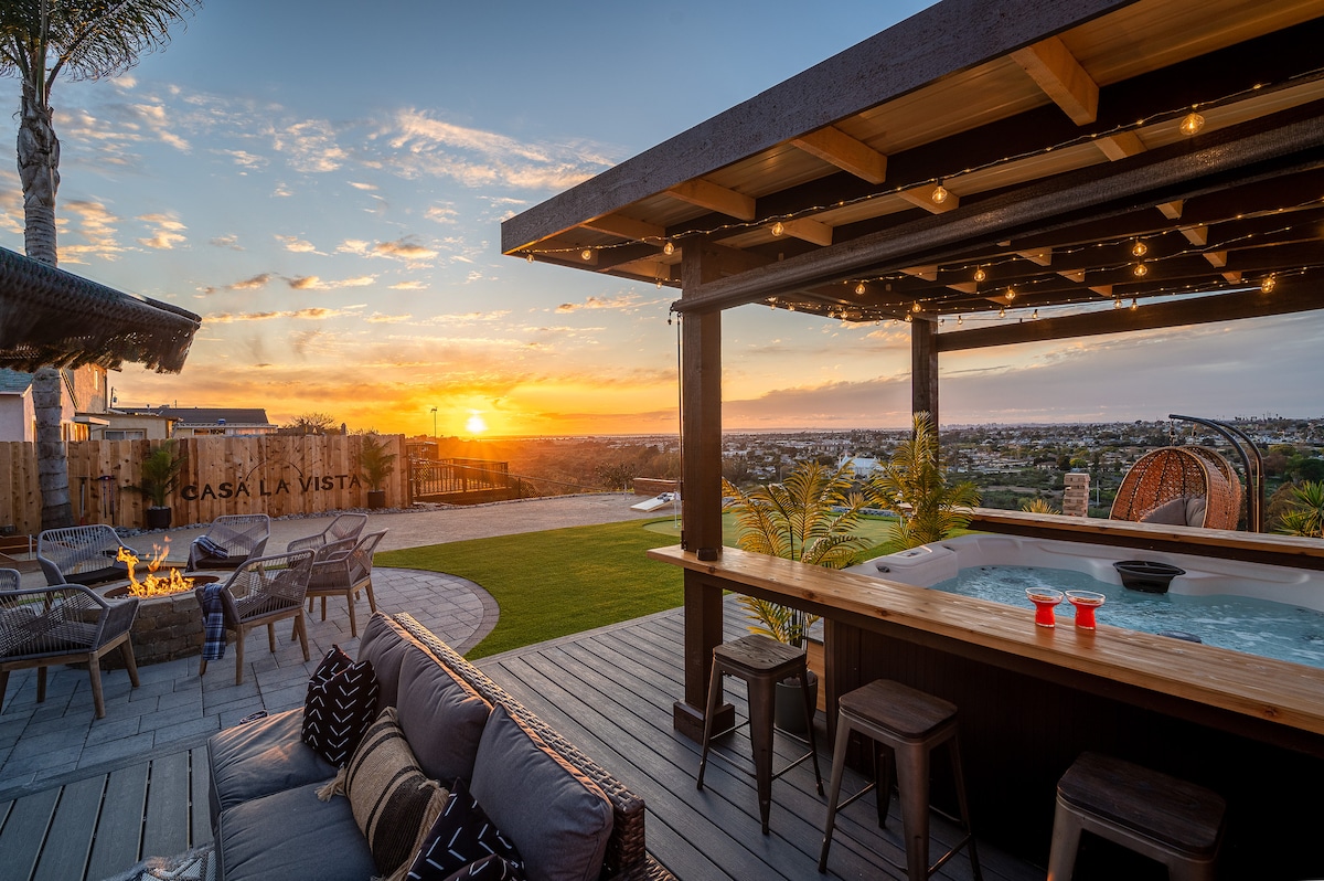 コロナド橋とダウンタウンの絶景を望む、街の上に佇む3寝室のオアシス。忘れられない思い出を作るために建てられました。 Casa La Vistaは、サンディエゴのダウンタウンとコロナド橋を一望できる素晴らしい丘の上にあるリゾートです。ジャグジーでリラックスしたり、カクテルを飲んだり、ファイヤーピットのそばで夕日を楽しんだりできます。パッティンググリーン、コーンホール、コーヒーノックがあり、10名様が宿泊できます。家族やお友達との旅行、ホストの承認を得たイベントに最適です。ダウンタウンとビーチからわずか数分