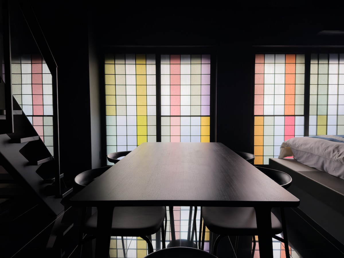 「AMP FLAT Daimyo」黒と和が交わる上質ステイ|最大6|福岡の中心地 大名エリア