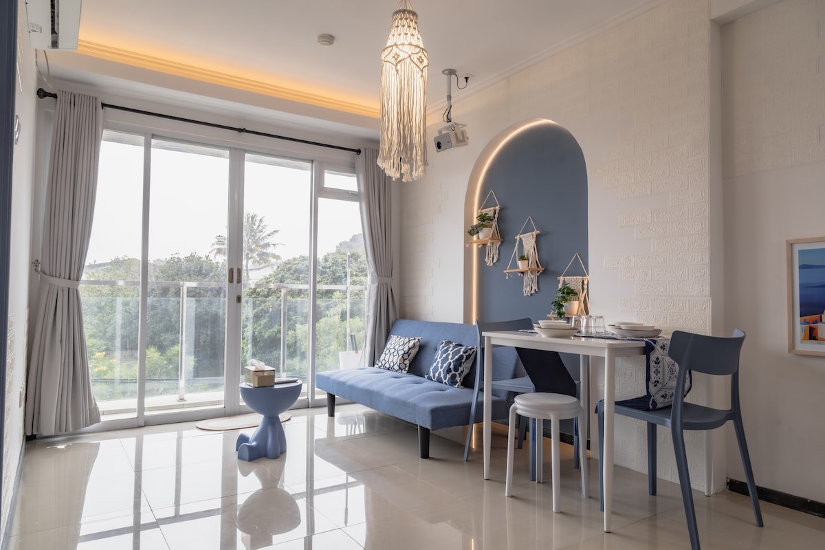 Welcome to Azure — unit apartemen bergaya Deep Coastal yang tenang dan modern Relax, unwind, and feel at home Mood: 🌊🟦🌫️🌿🪵📸 Unit 2 kamar ini cocok untuk hingga 5 tamu. Dibalut nuansa abu-abu dan biru navy dengan aksen kayu yang hangat, serta balkon menghadap kolam renang dengan siluet pegunungan. Ideal bagi keluarga atau teman yang mencari pengalaman menginap aesthethic di Bandung. Berlokasi di Gateway Pasteur, dengan akses mudah ke PVJ, Paskal, Dago, Riau, Gedung Sate, dan gerbang tol
