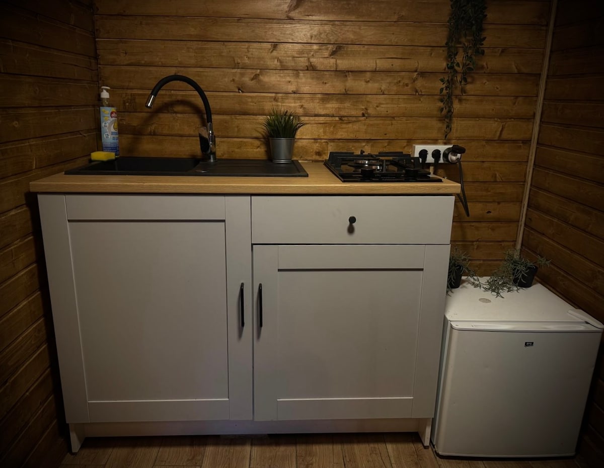 The tiny house is on an elevated platform and that's why it is called `The Island'. From your bed you'll have the best views of the Transylvanian hills. Inside the tiny you will see that it has a lot to offer! A fully equipped kitchen to make your own meals, a comfortable bathroom with walk-in shower and a cozy bed with a stunning view. Outside you will find a small seating area and a hot-tub! You can also use our grill facilities and fire-pit. *Check my other listings for more tiny houses