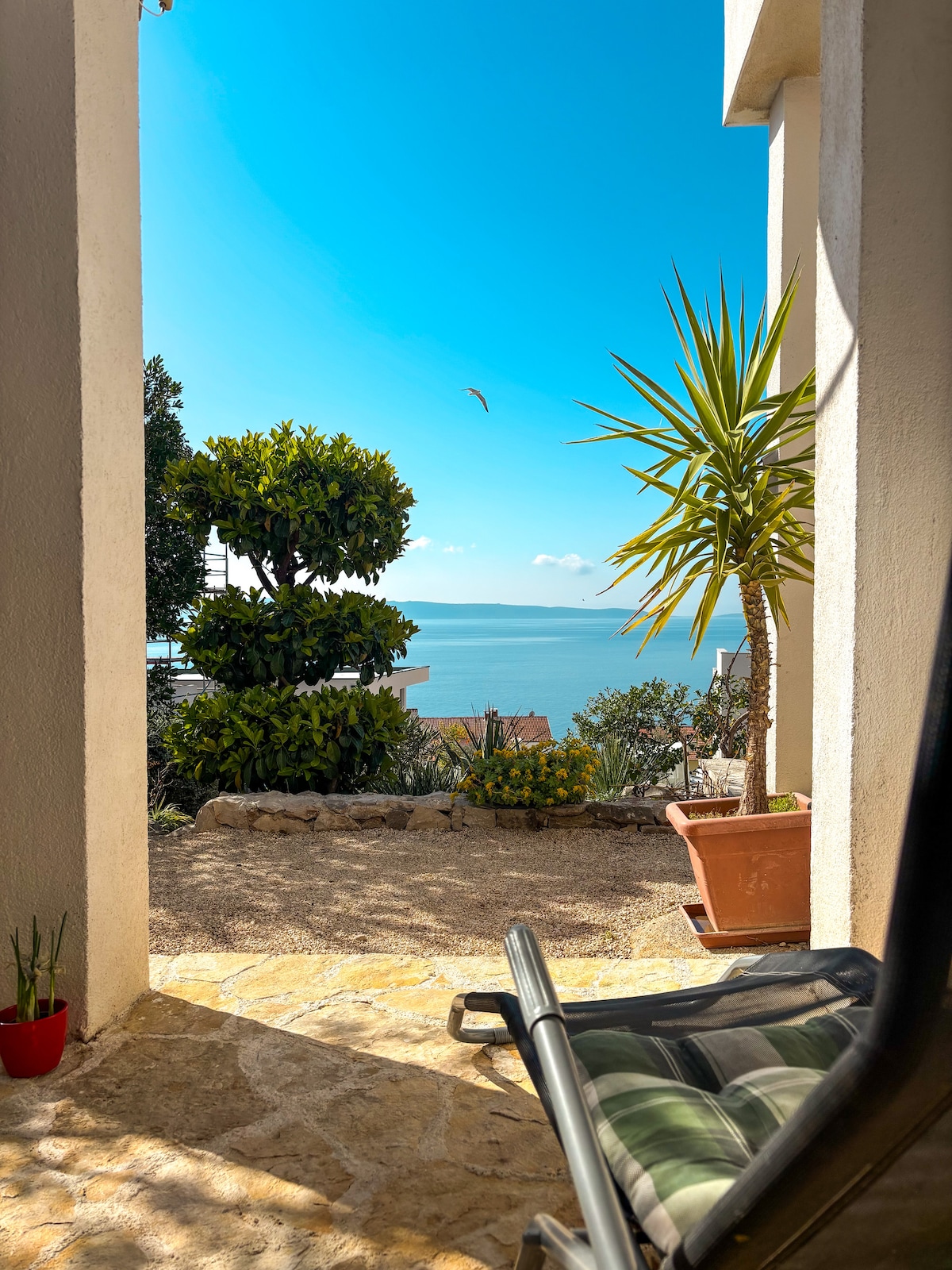 素晴らしい海の景色が楽しめる、共用テラス付きの快適なワンルーム。 トロギルからわずか2 kmのビーチに位置するこの小さなスタジオは、設備が整っており、ダルマチア中部での休暇に最適な拠点です。美しい小石のビーチが道の向かい側にあります。わずか数歩です。テラスは2つのスタジオの間で共有されており、それぞれの前には専用エリアがあります。繁忙期には、家からさらに離れた場所でも、路上駐車を見つけるのが難しい場合がありますのでご注意ください。