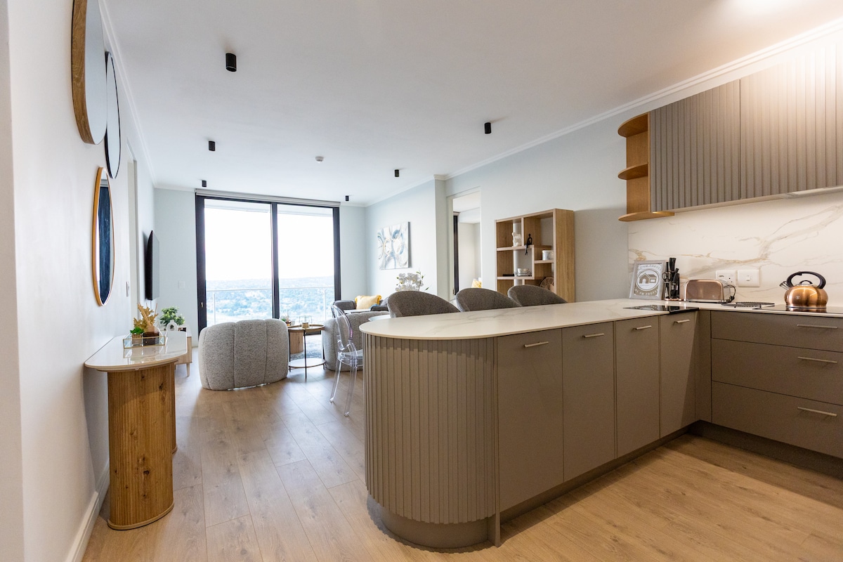 キアラミのザ・ウッズにあるモダンで静かなアパートをお楽しみください。設備の整ったキッチン、ガスコンロ、太陽光発電の給湯器、高速Wi-Fi、専用のワークスペースがあります。24時間365日のセキュリティを備えた安全な敷地内にある、きらめくプールと緑豊かな庭園でリラックスしましょう。レストラン、ブルーヒルズショッピングセンター、モール・オブ・アフリカ、サンドトンから数分、M1へのアクセスも簡単です。O.R.タンボ国際空港からわずか20~25分、ランセリア空港から25~30分の便利なロケーションです。