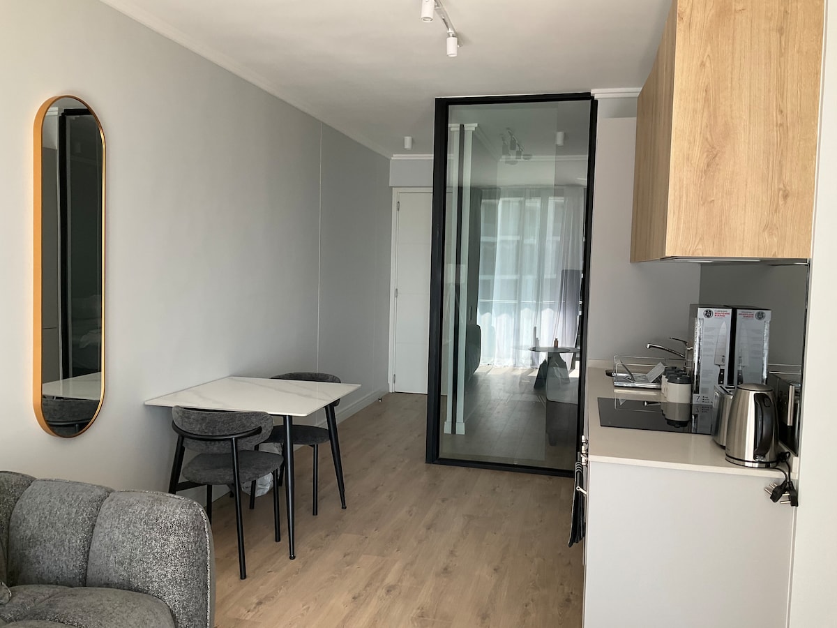 新しく改装されたワンルームで、専用パティオ付き